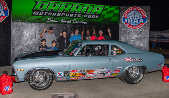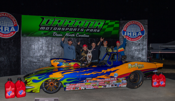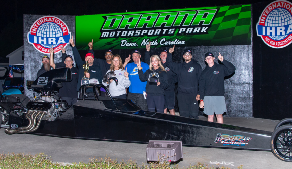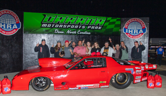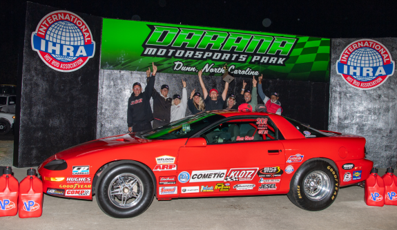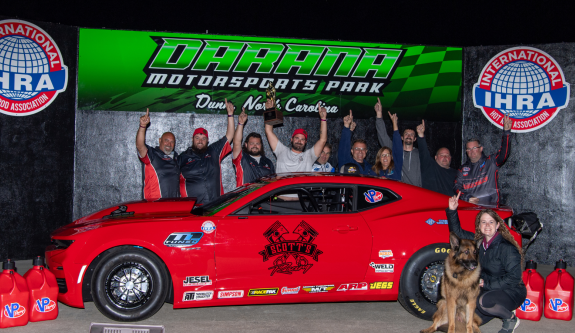 Image × DUNN, N.C. — Scott Duggins in Top Dragster and Donnie Gibbs Jr. in Top Sportsman headlined the list of winners at the IHRA Outlaw Nitro Series Pro-Am races Saturday at Darana Motorsports Park - Dunn. The races were streamed on SPEED SPORT 1. They are available for fans to view at IHRA.TV on YouTube. Duggins got the advantage at the tree .014 to .039 over Bruce Holland in the Top Dragster final. It proved to be the difference as Duggins went 4.324 seconds at 157.21 mph on a 4.31 dial-in. Holland was just plus-four on his 4.35 dial-in with a speed of 156.61 mph. Gibbs was spectacular in the Top Sportsman final. He had a 4.552 elapsed time at 154.99 mph against a 4.55 dial with a .020 reaction time. Runner-up Al Daviedowski was under his 4.33 dial with a 4.324-second pass at 161.90 with a .057 reaction time. Anthony Mini denied Courtney Moeller a repeat win in the Outlaw Snowmobile class. He got the reaction time advantage and then sped to 4.403 seconds at 162.37 mph. Moeller finished in 4.801 seconds at 145.02 mph. A pair of roadsters were in the Super Rod final. Lauren Freer was the winner as she was closer to the 6.40 Index in a race that she and Keith Mayers both broke out. Mayers had the better start, .019 to .038 and then went 6.377 seconds at 116.66 mph. Freer had 6.389 seconds and 142.18 mph as her final numbers. Todd Barton cruised to the win in Quick Rod as final-round opponent Rick Schneider fouled by a heartbreaking -.001 second. Schneider was right on with a 5.701-second run at 138.19 mph on the 5.70 Index. With the race in hand, Barton eased down the track in 8.669 seconds. Reginald Lytch posted a 7.007 elapsed time at 111.18 mph on the 7.00 Index in the Hot Rod final. He drove his Chevy Nova to the win as Neil Hobbs went under at 6.996 seconds and 107.42 mph. Hobbs had a .014 to .035 advantage at the start. In Super Stock, Russell Ghent drove his Chevy Camaro to the winner’s circle after a 6.248-second run on his 6.24 dial-in. Mark Nowicki broke out by just -.003 on his 6.01 dial-in time. Ghent also had a .020 to .051 better reaction time. Steve Foley was dead-on his 6.12 dial-in time to beat Ricky Pennington in the Stock final. It was just a .002 margin of victory for the Chevy Camaro driver. Pennington had a .034 to .036 advantage at the start and was 6.844 against a 6.84 dial-in. Tony Scott was the best in Factory Stock with his winning run of 4.903 seconds and 146.66 mph. Taylor Dietsch was runner-up at 4.925 seconds and 141.71 mph. Scott was slightly quicker, .019 to .025, at the tree. The featured Stick Shift class that was added to the weekend crowned Chad Wisecarver as the inaugural winner. Wisecarver went down the strip in his Chevy Cobalt in 6.148 seconds at 109.85 mph on a 6.14 dial-in. He’d already won as the final-round opponent, Jeff Smith, left too early. Photos by: Robert Richard/BME Photography Donnie Gibbs Jr. Top Sportsman Lauren Freer Super Rod Chad Wisecarver Stick Shift Todd Barton Quick Rod Steve Foley Stock Russ Ghent Super Stock Reginald Lytch Hot Rod Tony Scott Factory Stock Previous Next Previous Next Duggins, Gibbs Headline IHRA Pro-Am Winners at Darana Motorsports Park IHRA Outlaw Nitro Series Darana Motorsports Park - Dunn