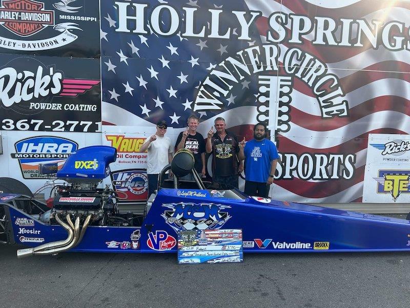 Image × HOLLY SPRINGS, Ms. — Talk about some heavy hitters winning in IHRA Summit SuperSeries action at Holly Springs Motorsports Park. Cliff Hubbard was congratulated by his brother-in-law, six-time IHRA Top Fuel World Champion Clay Millican, after winning Sunday’s Super Pro race at Holly Springs Motorsports Park. Hubbard, whose wife Leigh is also a champion racer, drove his dragster to the win over runner-up David Elam. He wasn’t the only high-profile winner. Tim Pace, the 2021 IHRA Summit SuperSeries Mod World Champion, drove his familiar blue Mustang to the No Box win over the always-tough John Burleson. Brad Davis, a fierce competitor in his own right, was the Sportsman winner with Matt Anderson his final-round opponent. Kaleb Fesmire rounded out the Sunday winners in Junior Dragster over Austin Bobo. While those guys got the attention Sunday, it was Buddy Ferrell who raced his red Camaro to the Super Pro win on Saturday. With his final-round win over David Smith, he extended his huge lead in the point standings. Blake Sanders drove his black Chevy S-10 pickup to the No Box victory after taking on the heavy task of facing Pace in the final round. Davis started Saturday with a win over Kamden Greene to begin his weekend sweep in Sportsman. Vayda Ballentine was the best in Junior Dragsters, picking up the final-round win over Rilee Gately. The action actually started Friday night with a 32-car shootout which saw Brian Hannan take the win over Jesse Bobo. Davis extended his track points lead with his sweep, while David Ciarloni heads up the No Box standings and Mason Glidewell is first in Junior Dragster. More incredible racing is coming up at Holly Springs including the Mulligans Wild race on June 12-15 with an $11,111-to-win purse in the Super Pro class. Check out the track’s Facebook page for this and more action as well as great opportunities to test and tune. Be sure you’re a part of the exciting action at your local track. Check out the IHRA membership portal and become a part of the IHRA Summit SuperSeries, the most prestigious national championship in all of bracket racing. Family of IHRA Hall of Famer, World Champion Celebrate at Holly Springs Holly Springs Motorsports Park IHRA Summit SuperSeries Junior Dragsters