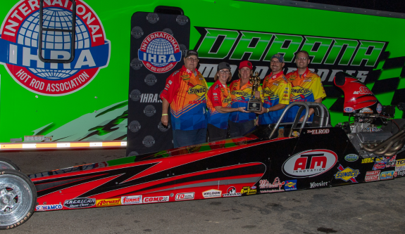 Image × WEST SALEM, Ohio — Chris Goebel secured the win in Top Dragster after making it to two finals rounds, and Jamie Elrod won for the second time this season in IHRA Outlaw Nitro Series Pro-Am races at Darana Dragway — West Salem, Ohio. The races were live-streamed on SPEED SPORT 1. They are available for fans to view at IHRA.TV on YouTube. Goebel won the Top Dragster race when his final-round opponent, David Warner, left the tree -.010 too early. Goebel went on to drive his black dragster down the track in 4.304 seconds against a 4.29 dial-in for the win. Warner had quite the journey, going from first alternate all the way to the final round. Charlie Flanagan beat Goebel by just .001 in a double breakout in the Super Rod final. Flanagan finished in 6.389 seconds against Goebel’s 6.388 time. Goebel had the better reaction time, .023 at the start to .115 for the veteran racer Flanagan, who won his first Ironman trophy. Andy Gregoire piloted his orange and white 1955 Chevy Bel Air racer to the Top Sportsman win over Gary Wojnowski. Gregoire roared down the track in 4.327 seconds after a .022 reaction time. Wojnowski was just -.002 too quick at the start to trigger the red light. Elrod delivered another outstanding performance with a .014 final-round package in Quick Rod. Elrod had a .005 reaction time and was dead-on with a 5.709-second run on a 5.70 Index. It was her second win and third final round of the season. Runner-up Nick Karas finished in 5.676 seconds after a .035 reaction time. Thomas Coonly was dead-on the 7.00 Index in the Hot Rod final. He drove his Chevy Nova to a 7.005-second run at 104.77 mph. Runner-up Jim Pidgeon posted a 7.028-second run at 94.98 mph. In Super Stock, Chris Lozon drove his Oldsmobile to the win as final-round opponent Zack Running fouled at the start. Lozon posted a 6.369-second elapsed time on a 6.35 dial-in. Running’s red light took away a 6.391-second run. Zac Ross won on a holeshot with a .009 light to .076 over Mike Ours in an all-Mopar Stock final. Ross went down the track in 6.228 seconds at 99.34 mph on a 6.18 dial-in. Ours had a solid run of 7.155 seconds at 92.88 mph against a 7.15 dial. Kevin Skinner ponied up to beat fellow Ford Mustang driver Matt Obertanec in the Factory Stock final. Obertanec, the No. 1 qualifier, had the better start .022 to .129, but Skinner powered down the track in 5.211 seconds to drive around him. The IHRA Outlaw Nitro Series will wrap up the 2025 season Nov. 5-8 at GALOT Motorsports Park. Tickets are available here. Photos by: Robert Richard/BME Photography Chris Goebel Top Dragster Winner Charlie Flanagan Super Rod Winner Andy Gregoire Top Sportsman Winner Thomas Coonly Hot Rod Winner Chris Lozon Super Stock Winner Zac Ross Stock Winner Kevin Skinner Factory Stock Winner Previous Next Previous Next Goebel, Elrod Deliver Memorable Performances in Pro-Am Races at West Salem IHRA Outlaw Nitro Series Darana Dragway - West Salem IHRA Pro-Am