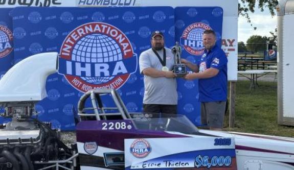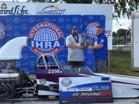 Image × Humboldt County Dragway Captures IHRA Division 6 (Midwest) Title HUMBOLDT, Iowa — Humboldt County Dragway racers captured the IHRA Division 6 (Midwest) title Saturday on the home track. Individual champions were also crowned at the western Iowa drag strip, with drivers picking up specially-designed IHRA Ironman trophies. Final-round action was highlighted by Ernie Thielen’s outstanding run in Top (Box) and Wade Lardy repeating as Sportsman champion. Thielen got off the tree in .002 and then matched his 4.91 dial-in with a 4.914-second pass at 142.54 mph. Runner-up John Russell had a .045 reaction time and then posted a 4.731-second time at 147.69 mph. John Russell, Top (Box) Runner-Up Wade Lardy, Sportsman winner Travis Ruetzel won on a holeshot .016 to .067 over Brad Nickerson in the Mod (No Box) final. Ruetzel’s winning pass was 5.600 seconds at 116.31 mph on a 5.58 dial-in. Nickerson had a 6.230-second pass at 110.78 mph against a 6.22 dial. Travis Ruetzel, Mod Champion Brad Nickerson, Mod Runner-Up Lardy was the Sportsman winner as Aaron Hansen broke out in the final round. Lardy went down the drag strip in 7.638 seconds at 89.68 mph against a 7.61 dial. Hansen finished in 7.829 seconds at 85.49 mph on a 7.84 dial. Lardy had the slight .070 to .077 advantage at the tree. Aaron Hansen, Sportsman Runner-Up A near-perfect .001 start for Ken Lawrence trumped Brian Wood’s .009 reaction time in the Motorcycle final. Lawrence’s bike motored down the track in 6.662 seconds at 106.08 mph. Wood, the 2024 IHRA Division 6 champion in the Top class, had a 5.424 elapsed time at 114.50 mph. Ken Lawrence, Motorcycle Champion Brian Wood, Motorcycle Runner-Up Tyler Honomichl, who finished Junior Dragster runner-up in 2024, had the best reaction time in every round of eliminations for the smaller cards. His slowest reaction time was in the final, but it still worked out with a .085 start paired with a 7.990 elapsed time at 79.53 mph on a 7.96 dial. Runner-up Rylee Hill had a 12.287-second run at 50.36 mph on a 12.54 dial. Tyler Honomichl, Jr. Dragster Champion Rylee Hill, Jr. Dragster Runner-Up Special awards were also handed out, with Humboldt winning the Best Appearing Team and Best Team Spirit. Dustin Medenwald received the Best Appearing Open Bodied award. Wade Lardy was the winner of the Best Appearing Car/Truck. Matt Anderson had the Best Appearing Motorcycle and Patrick Scully was the winner of Best Appearing Junior Dragster. The IHRA Division 5 (Thunder) Team Finals are up next, Sept. 4-6 at Muncie Dragway. Wade Lardy, Best Appearing Car/Truck Dustin Medenwald, Best Appearing Open Body Car Matt Anderson, Best Appearing Motorcycle Patrick Scully, Best Appearing Jr. Dragster IHRA Division 6 IHRA World Finals