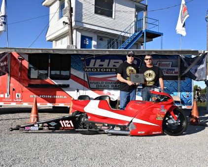 Image × ALBANY, Ind. — Brian Mileham doubled up with wins at the IHRA Division 5 (Thunder) Team Finals Race of Champions and main event. Mileham was the Top (Box) winner over Gary Yazell in the Race of Champions final. Bailey Pichette raced to the Mod (No Box) victory as Ricky Pena reached the final round. The Sportsman final pitted two of the top bracket racers in the Midwest. Duffy Baldauf picked up the win with Jimmie Barrett as his final-round opponent. It was Wolfe’s second win of the weekend after taking the Thursday Gamblers race. Nick Jones was the winner on two wheels. He outdueled Bob Nugent for the Motorcycle title. Blake Kirkpatrick took home the Junior Dragster title with his win over Parker Phillips in the final. The Friday Gamblers Race was also completed with Aaron Disinger taking a final-round win over Ryan Kirkpatrick in the Top (Box) class. Adam Needles was the Mod (No Box) winner, with Mark Simpson making it to the final round. Corey Scheland defeated Jacob Bierer in the Sportsman final. Mark Musselman powered to the Motorcycle win with Scott Shepeard taking runner-up honors. Lexi Clinger was the Junior Dragster winner over Brayden Gilden, who would go on to capture the main event victory. Special award winners were as follows: Best Appearing Car/Truck — Rex Ambrose Best Appearing Open Body — John Schober Best Appearing Motorcycle — Dan McCarten Best Appearing Junior Dragster — Nellie Ford Best Appearing Grandstands — US41 Dragstrip Best Appearing Team — Muncie Dragway Best Team Spirit — Muncie Dragway Duffy Baldauf Sportsman winner Nick Jones Motorcycle winner Blake Kirkpatrick Jr. Dragster winner Bailey Pichette Mod (No Box) winner Dan McCarten Best Appearing Motorcycle John Schober Best Appearing Open Body Nellie Ford Best Appearing Junior Dragster Rex Ambrose Best Appearing Car/Truck Previous Next Previous Next Mileham, Pichette, Baldauf, Jones, Kirkpatrick Win at IHRA Division 5 Race of Champions IHRA Division 5 Race of Champions
