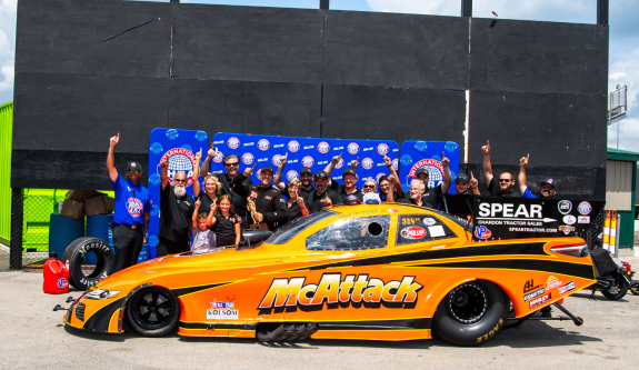 Image × HEBRON, Ohio — Scott Palmer and Mike McIntire made history as the first Top Fuel and Funny Car winners in the new IHRA Outlaw Nitro Series at Darana Raceway. Both of them earned the $50,000 prize and the prestigious IHRA Ironman trophies as the races at the beautiful Ohio track were live streamed on IHRA.TV. Palmer had a winning effort of 3.958 seconds and 314.24 mph to beat Krista Baldwin’s 4.125-second elapsed time at 293.28 mph in the final round. It was a long time coming for Palmer, who previously won an IHRA Top Fuel final at Milan, Michigan in 2008. Both Palmer and Baldwin, the granddaughter of the legendary Chris “The Greek” Karamesines were strong at the start in a side-by-side drag race. Driving the Professional Bull Riders dragster, Palmer rocketed down the drag strip in less than half the time of a qualified bull ride. According to Palmer, he saved his best performance behind the wheel for last. “I’ve been doing a terrible job driving all weekend,” Palmer said. “I just couldn’t keep my foot on the floor like a beginner. I had to step it up, and luckily my clutch work was good.” McIntire was No. 1 qualifier and he continued to set the pace throughout the weekend in Funny Car. McIntire got the .020 advantage at the starting tree, and then posted a run of 4.166 seconds at 293.41 mph to win Sunday’s final. It was needed with former IHRA World Champion Del Worsham charging down the track at 4.160 seconds and 305.56 mph. “It’s crazy, it’s insane, I love IHRA and I love racing Del,” McIntire said. “This is for my dad. He passed away earlier this year. We did this together. To come out here, I can’t even describe it.” Frankie “Mad Man” Taylor had plenty of reason to be happy at the end of Pro Mod eliminations. Mike DiDomenico shut his Corvette off at the tower, leaving Taylor to make a winning solo run at 3.726 seconds and 199.64 mph. Taylor was consistent throughout the weekend with runs of 3.69, 3.70 and 3.71 in earlier rounds. He paid tribute to IHRA Hall of Famer Scotty Cannon after the win. “How fitting it is to win on Scotty Cannon’s birthday,” Taylor said. “Thanks to (IHRA Owner and CEO) Darryl Cuttell for putting all this together and bringing IHRA back. We pour our hearts and souls into this.” Larry Morgan picked up the win in Pro Stock when final-round opponent Derrick Reese was two-tenths too quick at the start. Both cars were shaking the tires hard, and despite Reese’s foul, Morgan’s Chevy Camaro went ahead and made a run down the track. “I haven’t raced in a while, but to come here and win this race is pretty special for everybody,” Morgan said. “I just drive this car. We’re excited for all the people here.” Bob Malloy paced the Top Fuel Harley field with a winning run of 5.340 seconds and 204.01 mph in the final round. Jay Turner was the runner-up with a 5.491-second pass at 193.29 mph. Jerry Tucker’s .024 reaction time advantage over Chris Powers proved the difference in a competitive Mountain Motor Pro Stock final. Otherwise, they were close to equal with Tucker with a 4.120 elapsed time and 174.89 mph. Powers posted a 4.122 run at 174.26 mph. Tony Wilson triumphed in an exciting Pro Nitrous final as the front end of opponent Dale Brinsfield’s car went up in the air late in the run, slammed back down and the chutes deployed. Wilson powered ahead with 3.790 run at 201.64 mph for the win. Jackie Fricke combined a .006 reaction time with the 5.520-second run at 267.53 mph to win the Top Alcohol Dragster final. Mike Coughlin, who had a .028 reaction time, was runner-up with a run of 5.606 seconds and 262.74 mph. Canadian racer Stan Sipos powered to the close victory over Phil Esz in the Top Alcohol Funny Car final. The British Columbia went down the track in 5.505 seconds at 264.03 mph in a side- by-side battle with Esz who finished in 5.496 seconds at 262.28 mph. After the incredible opener, the IHRA Outlaw Nitro Series is scheduled to return July 23-26 at Milan Dragway in Michigan. Mike McIntire FC 324 Mike McIntire Winner's Circle Scott Palmer TF 5050 Scott Palmer Winner's Circle Previous Next Previous Next Palmer, McIntire and Others Make History at IHRA Outlaw Nitro Series Opener IHRA Outlaw Pro Mod Nationals Darana Raceway - Hebron