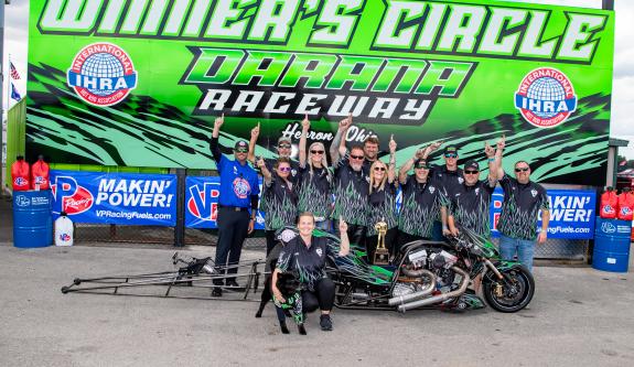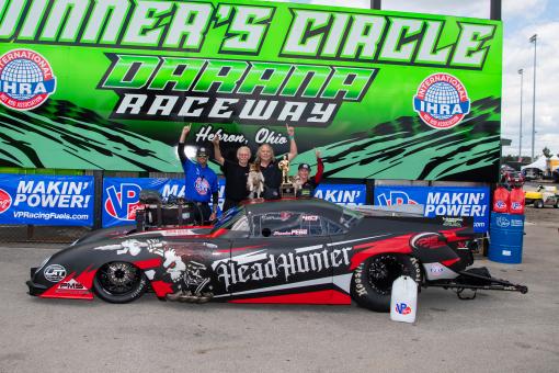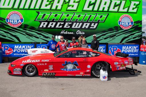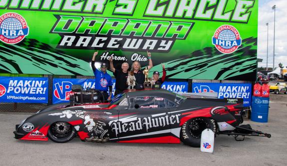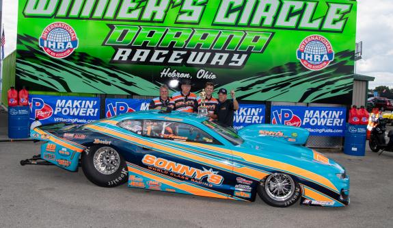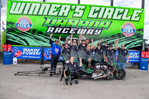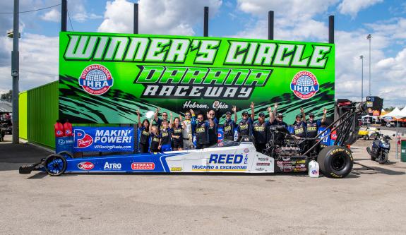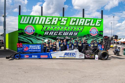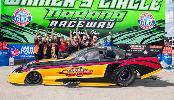 Image × HEBRON, Ohio — Shawn Reed and Dan Hix scored thrilling victories Sunday in the IHRA Outlaw Nitro Series at Darana Raceway - Hebron. The winners of the two featured classes took home the special IHRA Ironman trophies and $50,000 checks, with the races streamed on IHRA.TV and SPEED SPORT 1. Reed, a legendary multi-time boat racing champion, had more than a Sunday cruise on the track. He rocketed down the Ohio drag strip in 3.819 seconds at 327.75 mph to beat Larry Dixon in a strong Top Fuel final. Dixon trailed with a 3.855-second pass at 319.83 mph. “It’s pretty cool,” Reed said of winning his first Ironman trophy. “That win was pretty epic for us. We won Bradenton [PRO Superstar Shootout] at the beginning of the year, and it’s been a long road, testing some parts, crashing the car in Seattle, so it’s a good job to Rob Wendlyn and the guys to get us down that right lane with a pretty good number too.” Hix won Funny Car in a hotly contested final against Del Worsham, who had won the most recent race in Milan, Michigan, and where Hix was the runner-up. They were running neck-and-neck when Worsham’s car broke loose, and he made an incredible save to keep from crashing the car. The winning time for Hix was 4.329 seconds at 295.86 mph, in a car that has a single Magneto and a small fuel pump. Worsham’s near crash at the end of the track moved his numbers to 4.535 seconds at 196.42 mph. “It’s unbelievable – I didn’t think I actually got the win,” Hix said. “He [Worsham] shut it off at the finish line, and I just went ripping by there. It wasn’t until they were waving me over to do the fun interviews that it started to set in.” Hix referred to his time in this new-to-him Funny Car as a Cinderella story. It was only his second time out in the car, first in Milan, MI, and then this weekend. He also thanked his team, Rich Jr. and Rich Sr. McPhillips and Dom Lagana for their help. “Yesterday was my dad’s birthday, so I was happy to get the win for him today,” Hix added. Rickie Smith, the IHRA Hall of Fame driver, overcame Tim Molnar’s advantage on a holeshot to win the Pro Nitrous final. Smith had a smooth run and finished with a 3.616-second elapsed time at 213.57 mph to beat Molnar, who had a hiccup mid-track and finished in 7.334 seconds. “It was a good final round. I tune that car too, and I knew he was good on the tree,” Smith said, who last won an Ironman in Pro Mod in 1997. “I had a good light, and it was a really awesome day.” Chris Powers captured his second straight Mountain Motor Pro Stock victory. His Chevy had a winning time of 4.059 seconds at 176.47 mph. Jordan Ensslin was close behind in his Mustang, going 175.78 mph on a 4.080-second run. “The round before we broke the tranny, so we had to get the motor fixed, and the shifter was loose when I went to do the burnout,” Powers shared. “It was already a stressful moment, but I just relaxed and knew I had to do a good job because Ensslin can cut a good light.” Craig Sullivan won Pro Mod when final-round opponent “Disco Dean” Karns didn’t get going at the start because a bolt fell out of the rear transmission mount in his pink Cadillac. It left Sullivan to post a 3.750 mph run at 205.01 mph for the win, who last won an Ironman trophy in Top Dragster. “We had some people step in and help us,” Sullivan said, “we swung four-link every round trying to find home. “Dean and I bracket raced before. Dean had his antics, but we just went up there and mimicked what we did before. The car actually got a little faster in the middle, and it went fast enough to drive it forward. I didn’t see him to collect myself, so that’s why the slow elapsed time was there. But I got back in it, and that was the fastest mile per hour we’ve had at an IHRA track,” Sullivan added. Brandon Pesz came through with the Outlaw Pro Modified victory and will go down in the history books as the first-ever winner of the class within the IHRA. Pesz was credited with a 3.616-second pass at 213.57 mph as final-round opponent Billy Banaka also had trouble at the start. “[The first win] is something that they can never take away, being the first No. 1 qualifier and winner in Outlaw Pro Mod, and on top of all that, I’ve got low ET and top mile per hour – I checked all of the boxes that you can. It doesn’t happen very often, but I’m going to take it,” Pesz said. Tracy Kile picked up the win in Top Fuel Harley over Hall of Fame rider Jay Turner. Kile powered to a 5.419-second pass at 204.45 mph to outdistance Turner, who finished in 5.747 seconds at 151.77 mph. Top Dragster saw Frank Brank score the win as Dennis Meade was -.009 too quick at the start. With the race in hand, Brank slowed down to a 4.971-second run at 104.77 mph. Meade went ahead and powered down track in 4.423 seconds at 156.79 mph. Ricky Adkins picked up the Top Sportsman final win in his 1961 truck. He had a .010 reaction time and then finished in 4.781 seconds and 143.54 mph. Bill Yates had the better time and speed at 4.260 seconds and 169.30 mph, but couldn’t overcome Adkins’ quick start. Gary Williams emerged with the win in Hot Rod. His red GMC Sonoma pickup had the winning time of 10.917 seconds at 131.58 mph. Runner-up Tim Shuck broke out on a 10.90 Index at 10.872 seconds and 128.50 mph. Steve Theodor drove his Corvette to the Super Rod victory with a 9.917-second run at 162.22 mph. Runner-up Jim Kreitzer at 9.877 seconds and 165.08 was under the 9.90 Index. Pat Debottis had the winning effort of 8.909 seconds at 186.03 mph in the Quick Rod final. Kenny Farrell lost at the tree when he left -.017 too early. It was the classic Camaro versus Mustang final in Super Stock. Score it for the Bowtie Brigade as Aaron Russell popped an impressive wheelie at the start and then finished in 10.110 seconds and 117.19 mph. Rodney Worrell had a fast Ford at 151.41 mph, but triggered the red light. Dawson Pauley picked 