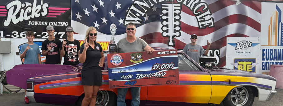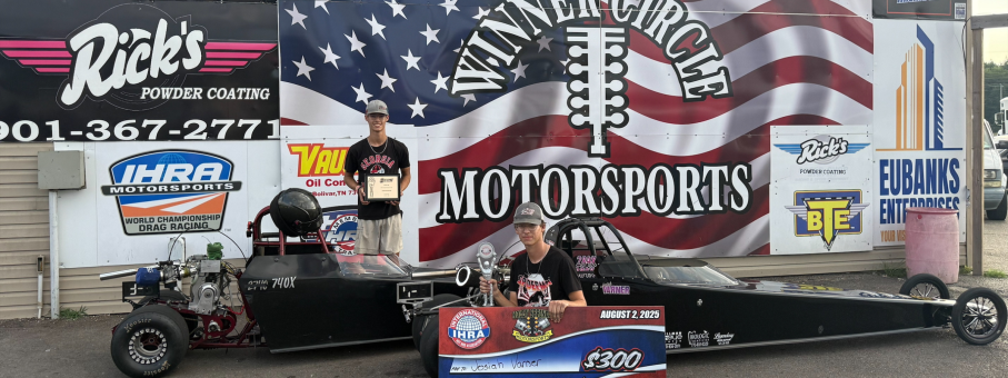 Image × HOLLY SPRINGS, MS — The Varner family had plenty to celebrate at last weekend’s IHRA Sportsman Spectacular event at Holly Springs Motorsports. Derek Varner, the father, scored the win in Mod (No Box) with Blake Sanders, a frequent contender at Holly Springs, taking the runner-up honors. In the Junior Dragster final, Josiah Varner got the best of brother John Varner to take the victory. Alex Meadows in Top (Box), Chris Foster in Sportsman, and Chad Otts in Motorcycle also captured special IHRA Ironman trophies. The winners in all five classes qualified for the IHRA Summit SuperSeries World Finals at Alabama International Dragway. Meadows went home the winner in the Top class as Madison Fisher raced to the runner-up finish. Foster got the best of Tommy Jackson in the Sportsman final round. Otts scored a clean sweep of first and second place in the Motorcycle class. More great racing takes place at Holly Springs Motorsports as this weekend is the final IHRA Summit SuperSeries points race of the season. It features $6,000 to win for the Top (Box) class based on 100 cars and $3,000 for Mod (No Box) based on 100 cars. IHRA Summit SuperSeries track champions will be crowned in all five classes — Top (Box), Mod (No Box), Sportsman, Motorcycle and Junior Dragsters — as they will qualify for the IHRA World Finals in that way. Go here to check out the Holly Springs Motorsports Facebook page with more big events like the Mulligan’s Wild race on August 16, coming up. Derek Varner Mod Winner Blake Sanders Mod Runner-Up Madison Fisher Top Runner-Up Josiah Varner & John Varner Jr. Dragster Winner Josiah Varner, John Varner Runner Up Chad Otts With the clean sweep taking first and seccond place in Motorcycle Chris Foster Sportsman Winner Tommy Jackson Sportsman Runner-Up Ironman Trophies Sportsman Spectacular Previous Next Previous Next Varner Family, Meadows, Foster, Otts Score IHRA Sportsman Spectacular Wins at Holly Springs IHRA Sportsman Spectacular
