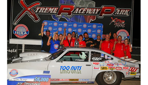 Image × FERRIS, Texas — Host track Xtreme Raceway Park scored its fourth straight and fifth overall IHRA Division 4 (Renegades) Team Finals championship. Xtreme’s No. 1 team scored 70 points to outdistance Penwell Knights Raceway with 49 points. Little River Dragway was third with 43 points, one ahead of Xtreme’s No. 2 team. Edinburg Motorsports Park was fifth with 14 points. It was a powerhouse lineup of racers with Jim Palmer beating defending IHRA SuperSeries World Champion Scott Wallace in the Top (Box) final. Wallace was a little better, .017 to .029 at the tree, but Palmer put together a winning pass of 5.789 seconds and 118.27 mph. Wallace finished in 6.321 seconds and 107.27 mph. Jeromy Helfer, the 2023 Top World Champion, won the Mod (No Box) race when Jake Howard, last year’s IHRA SuperSeries runner-up, red-lighted in the final. Helfer cruised to a 6.440-second run at 81.92 mph after his .013 reaction time. Andrea Ruffin had a .005 start, while Clay Gossett triggered the red light in the Sportsman final. Ruffin completed a strong run with a 7.485-second pass at 89.93 mph on a 7.46 dial-in. Another racer who is no stranger to big wins, Michael Turman, won the Motorcycle final as Steve Landers also fouled at the start. Landers’ red light denied a potential winning effort of 5.891 seconds at 118.30 mph. With the race in hand, Turman cruised to the victory. In the Junior Dragsters, Shane McKinney was the winner after Mason Landers’ breakout on his 9.00 dial-in. Landers had a big advantage at the tree with a .004 reaction time. McKinney stayed with it and posted a 7.893-second run at 82.77 mph. Also, with the younger racers, Mia Valenzuela got the victory over Emma Valenzuela in the TCR final. It was an extremely close race with Mia going 10.379 seconds at 73.37 mph against a 10.19 dial-in. Emma, who had a slightly better reaction time, had a 9.219-second elapsed time at 71.45 mph on a 9.00 dial. Gaylen Smith represented the home track to win the Track Managers race for Xtreme. Special Awards were also presented as follows: Best Open Body / Dragster — Tom Wilkinson Best Appearing Car/Truck — Cole Hurbold Best Appearing Motorcycle — The Landers Family Best Appearing Jr. Dragster — Ellie Picha Photos by: Robert Grice Jim Palmer Top (Box) Winner Scott Wallace Top (Box) Runner-Up Jeromy Helfer Mod (No Box) Winner Andrea Ruffin Sportsman Winner Clay Gossett Sportsman Runner-Up Michael Turman Motorcycle Winner Steve Landers Motorcycle Runner-Up Shane McKinney Jr. Dragster Winner Mason Landers Jr. Dragster Runner-Up Mia Valenzuela and Emma Valenzuela TCR Winner & Runner-Up Ellie Picha Best Appearing Jr. Dragster The Landers Family Best Appearing Motorcycle Tom Wilkinson Best Open Body/Dragster Cole Hurbold Best Appearing Car/Truck Previous Next Previous Next Team Points Previous Next Previous Next Xtreme Raceway Park Wins Fourth Consecutive IHRA Division 4 Team Finals IHRA Division 4 Renegades Team Finals Xtreme Raceway Park
